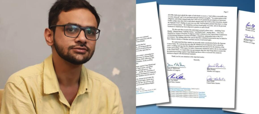 இந்நிலையில், உமர் காலித்துக்கு ஆதரவாக அமெரிக்க நாடாளுமன்ற உறுப்பினர்கள் 8 பேர், அமெரிக்காவுக்கான இந்திய தூதர் வினய் குவாட்ராவுக்கு கடிதம் எழுதியுள்ளனர். டிச. 30, 2025 தேதியிட்ட அந்த கடிதத்தில், “உமர் காலித்துக்கான தங்கள் ஆதரவை வெளிப்படுத்தி உள்ளனர். மேலும், உமர் காலித் UAPA சட்டத்தின் கீழ் 5 ஆண்டுகளாக ஜாமீன் இன்றி அடைத்து வைக்கப்பட்டுள்ளார். சட்டத்தின் முன் அனைவரும் சமம் என்ற சமத்துவத்துக்கு முரணாக இந்த சட்டம் இருக்கலாம்.