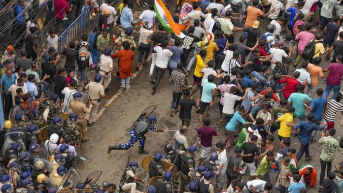இரு தரப்பு மோதல் காரணமாக, கொல்கத்தா, ஹவுரா பகுதிகள் வன்முறை களமாக காணப்பட்டன. போராட்டத்தை ஒருங்கிணைத்ததாக 220 மாணவர்களை போலீஸார் கைது செய்தனர். மாலையில் அனைவரும் விடுவிக்கப்பட்டனர்.