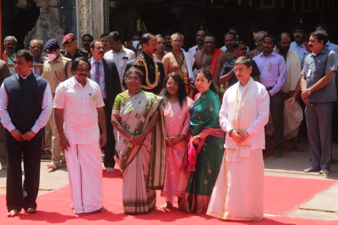 அப்போது, வருகைப்பதிவேட்டில் குடியரசு தலைவர் திரவுபதி முர்மு எழுதியது: “பழமையான மற்றும் வரலாற்று சிறப்புமிக்க மீனாட்சி சுந்தரேசுவரர் கோயிலுக்கு வந்ததில் மகிழ்ச்சி அடைகிறேன்.பிரம்மாண்ட கோபுரங்கள், கலைநயமிக்க கற்சிற்பங்கள், கட்டிடக்கலை ஆகியவை தெய்வீக அனுபவத்தை தருகின்றன.