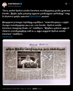 “We say that sending Hindi forward and sending Sanskrit behind is the national education policy” – School Education Minister Anbil Mahesh